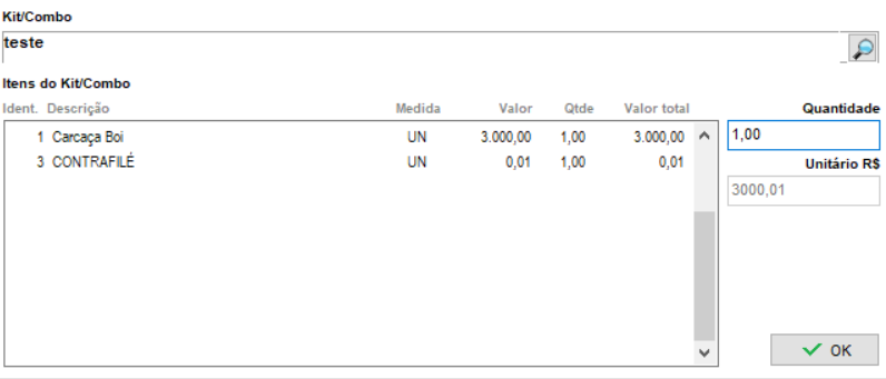 Na tela de caixa livre, pressione a tecla Insert e escolha a opção Kit.