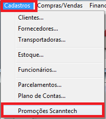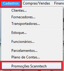 É posssível também gerar relatórios, disponíveis em Cadastros - Promoções ScannTech.