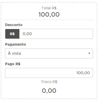 OBS: Caso escolha o valor Pago menor que o total da venda, o sistema adicionará automaticamente o Troco.