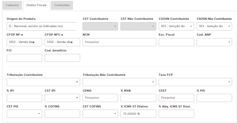 Nesta aba, serão disponibilizados os campos para o cadastro fiscal da mercadoria.