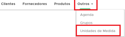 Para cadastrar a unidade de medida, clique em Cadastros - Outros - Unidades de Medida.