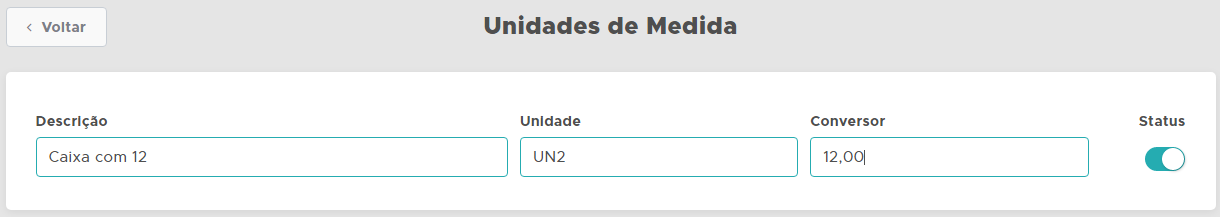 Dessa forma, ao dar entrada com essa unidade de medida, o sistema converterá 1 unidade em 12.