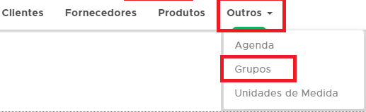 Para realizar o cadastro dos grupos, clique em Cadastros - Outros - Grupos.