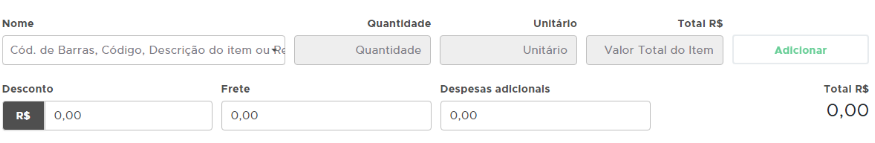 A tela de lançamento da compra é bem simples, basicamente basta informar o Fornecedor, itens e forma de pagamento.