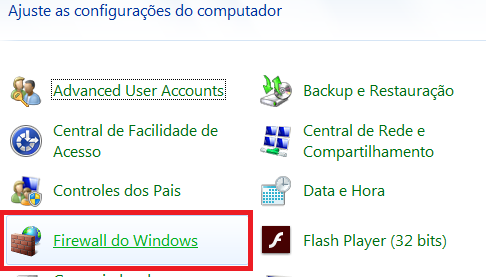 Em seguida localize e clique sobre o Firewall do Windows.