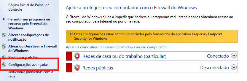Após isso, na coluna lateral esquerda, clique na opção Configurações Avançadas: