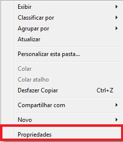 Clique com o botão direito do mouse em algum local vazio e vá até a opção Propriedades.