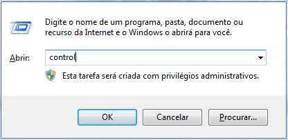 Pressione a Bandeira do Windows juntamente com a letra R e digite control no executar do Windows.