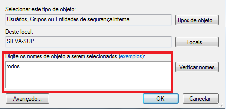 Informe a palavra Todos e clique em OK.