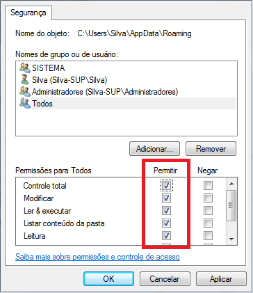 Marque as opções na coluna Permitir e clique em OK.