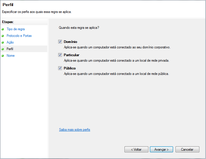 Marque todas as opções da próxima tela e clique em Avançar.
