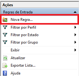 Agora, clique na opção Regras de Entrada.