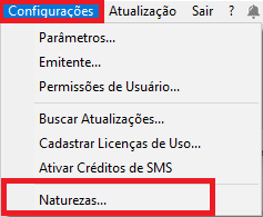 No sistema, clique em Configurações - Naturezas...