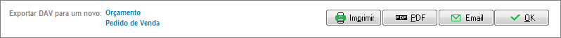 Ao reabrir um pedido já gravado, serão exibidas opções que permitem que este Pedido seja exportado para um novo pedido ou para um orçamento.