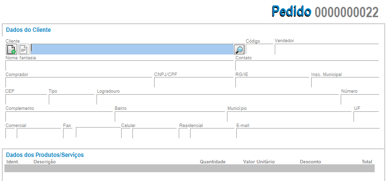 - Dados do Cliente: primeiramente será necessário informar o Cliente (este cliente deve estar previamente cadastrado para que ao selecioná-lo todas as suas informações sejam preenchidas automaticamente).