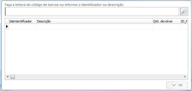 Dica! Clicando no botão Lançar itens a devolver será aberta a pesquisa de itens para facilitar o lançamento!