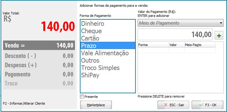 O cliente compra todos mas quer mudar a forma de pagamento