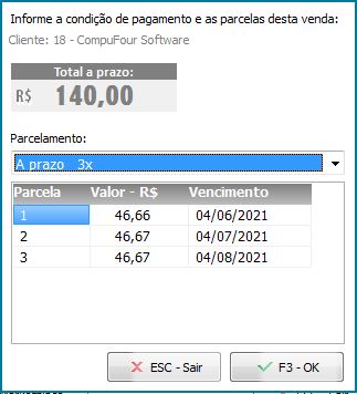 Na finalização da NFC-e, será apontado o parcelamento escolhido como padrão nas configurações do consignado;