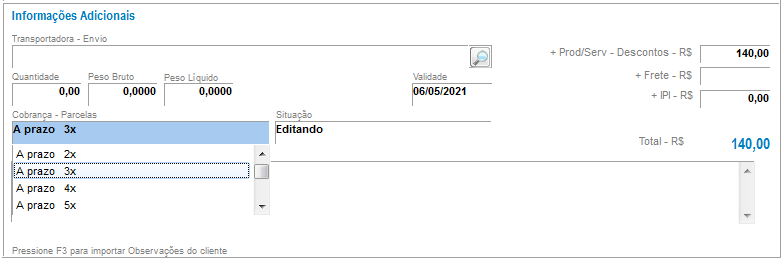 Escolha a opção Pedido/Orçamento;
