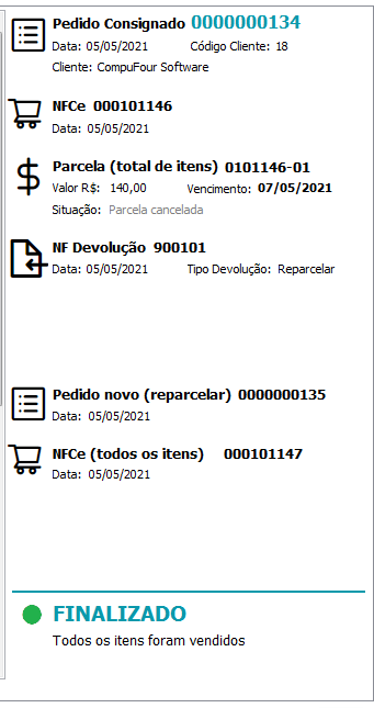 Em seguida, verifique a finalização do consignado no módulo Compras/vendas - Consignado;
