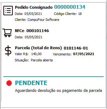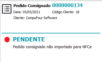 O Pedido constará com status de PENDENTE, ou seja, ainda não foi importado para NFC-e.