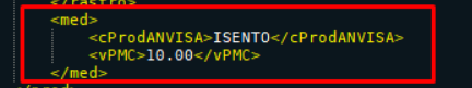 Para os medicamentos que não possuam código de Produto da ANVISA, o campo cProdANVISA do Grupo de Medicamentos deverá ser preenchido com o literal “ISENTO”.