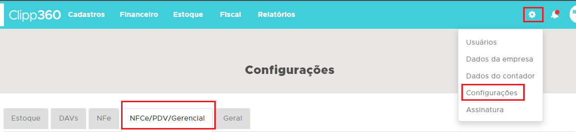 Agora para configurarmos no Clipp360 acesse as Configurações.