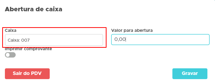 Após isso acesse o módulo do PDV e abra o caixa, informando o caixa selecionado no cadastro da maquininha.