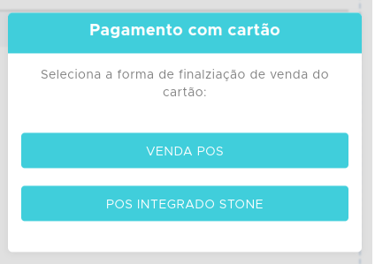 Se clicar em venda POS a venda será finalizada normalmente, se selecionar a opção POS intergrado Stone irá mandar a requisição para a maquininha.