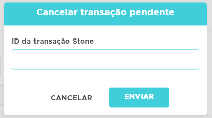 Clicando no botão Cancelar pendentes abrirá a tela solicitando o ID da Transação Stone, esse ID deverá ser verificado no site da Stone.
