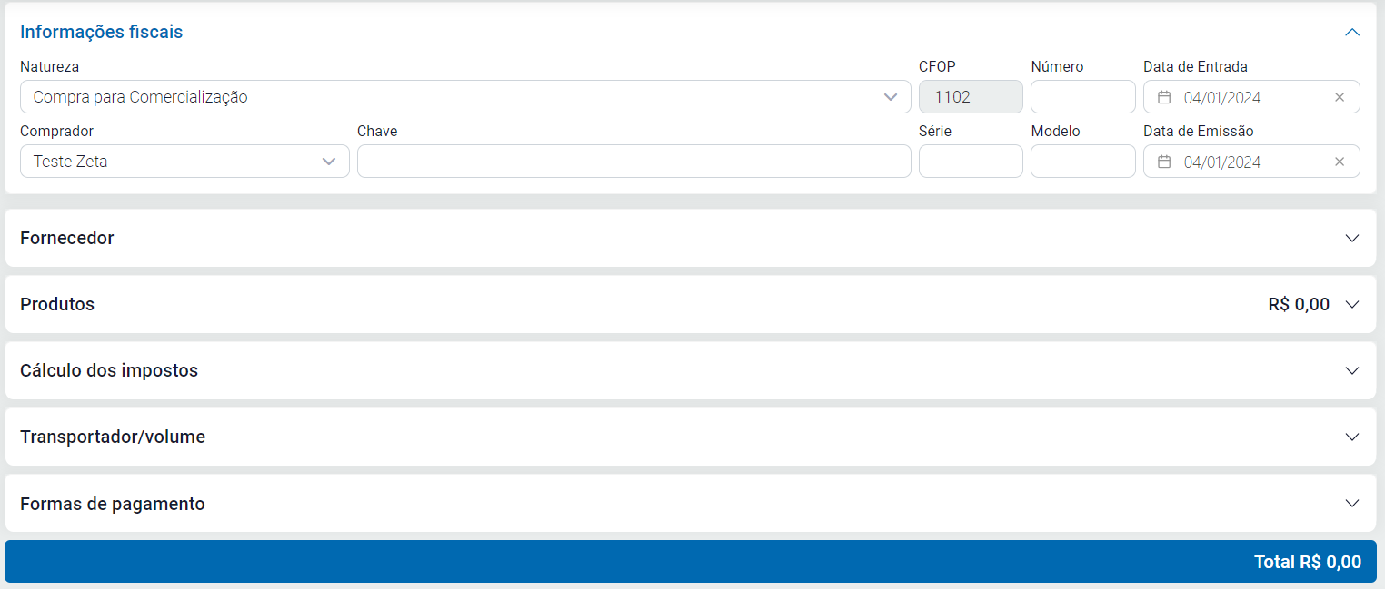 Primeiramente vá até a aba Fiscal - Compras