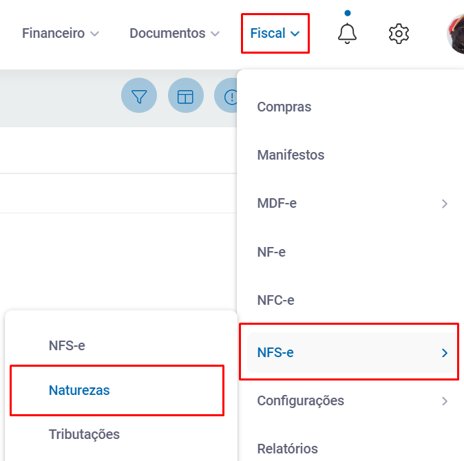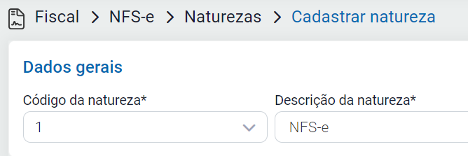 Para cadastrar as naturezas, acesse NFS-e - Naturezas;
