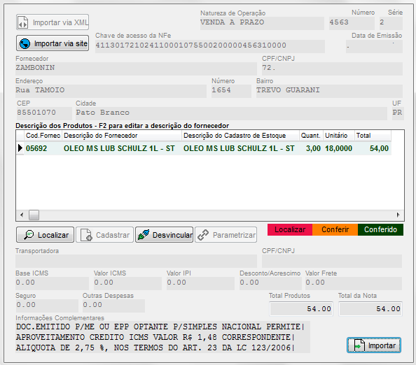 Para o procedimento completo da Importação do XML na nota de compra clique aqui.