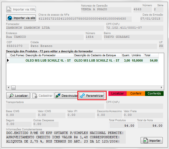 Parametrizando produtos para Importação de XML na Nota de Compra