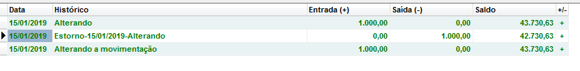 OBS: O sistema não irá excluir a movimentação anterior, irá criar automaticamente um novo lançamento estornando o anterior.