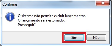 Irá apresentar a mensagem informando que o sistema realizará um estorno. Clique na opção Sim.