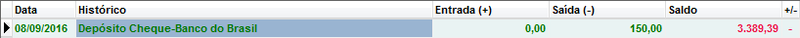 *Quando um cheque é depositado no banco – O valor é registrado como uma Saída no Caixa: