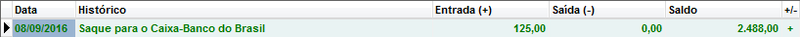 *Quando é realizado um saque do Banco para o Caixa Geral – O valor é registrado como uma Entrada no Caixa: