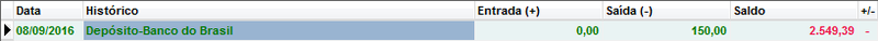 *Quando é realizado um depósito do Caixa Geral para o Banco – O valor é registrado como uma Saída no Caixa: