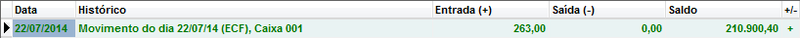 *Quando efetuado o Fechamento de Caixa da NFCe/SAT – O valor total de todas as vendas à vista do dia será registrado como uma Entrada no Caixa: