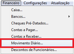 Para acessar esse módulo, clique no menu Financeiro e na opção Movimento Diário: