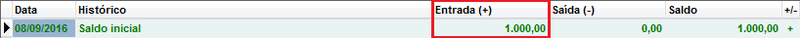 Neste exemplo, o saldo será positivo, portanto marcamos a opção Entrada (valor que entrará no caixa, débito).