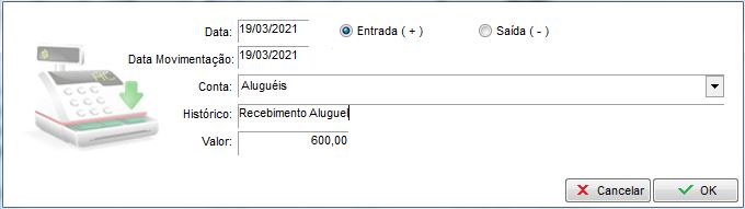Obs: Somente será possível efetuar lançamentos com data maior ou igual ao último lançamento.