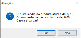 Ao clicar neste ícone, o custo médio será recalculado com base em TODAS as notas de entrada que foram emitidas com esse item.