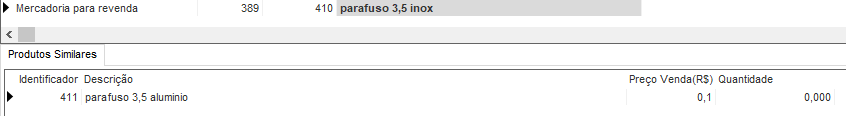 Apresentará na parte inferior da tela os produtos similares após clicar sobre cada item no estoque.