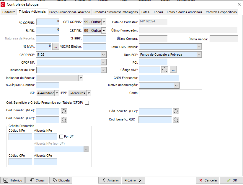 • Cód.Benefício CFe: Preencha o código de benefício do item para uso na NFC-e, caso tenha dúvidas, consulte a contabilidade;