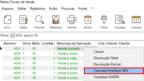 Cancelando uma Nota Fiscal Eletrônica no ClippPro